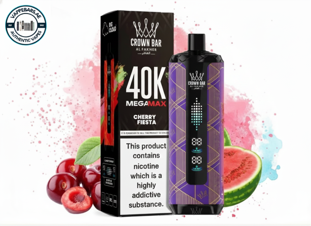Al Fakher Crown Bar Mega Max 40K Puffs Cherry fiesta in UAE