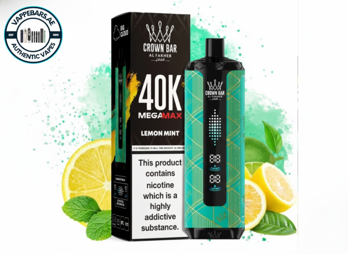 Al Fakher Crown Bar Mega Max 40K Puffs Lemon mint in UAE