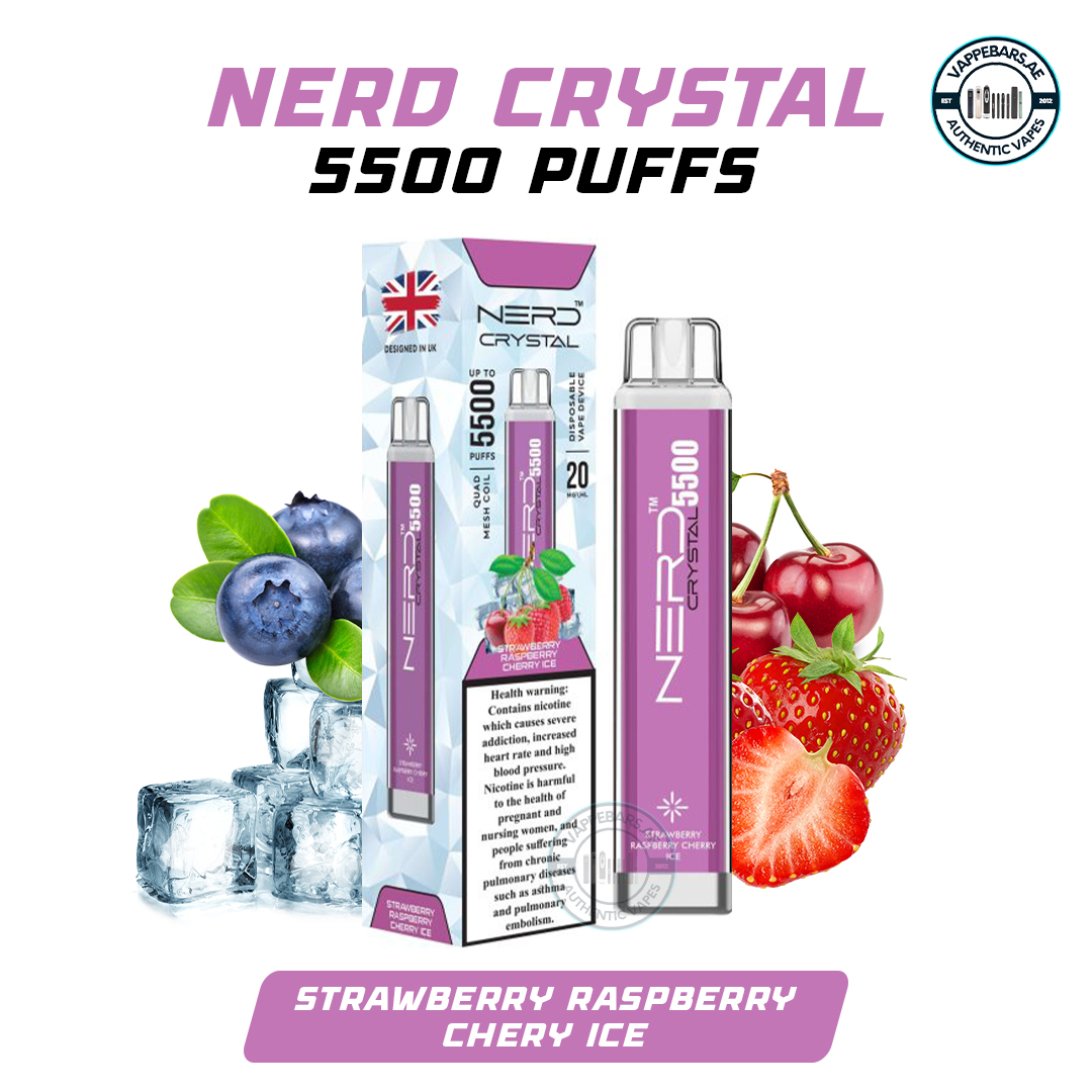 Nerd Crystal 5500 Puffs Strawberry Raspberry Cherry ICE Disposable Vape In UAE