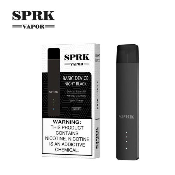 Night Black: Indulge in sleek sophistication with the Night Black SPRK VAPOR BASIC DEVICE. Its sleek black exterior exudes class and versatility, complementing any style with its understated elegance.